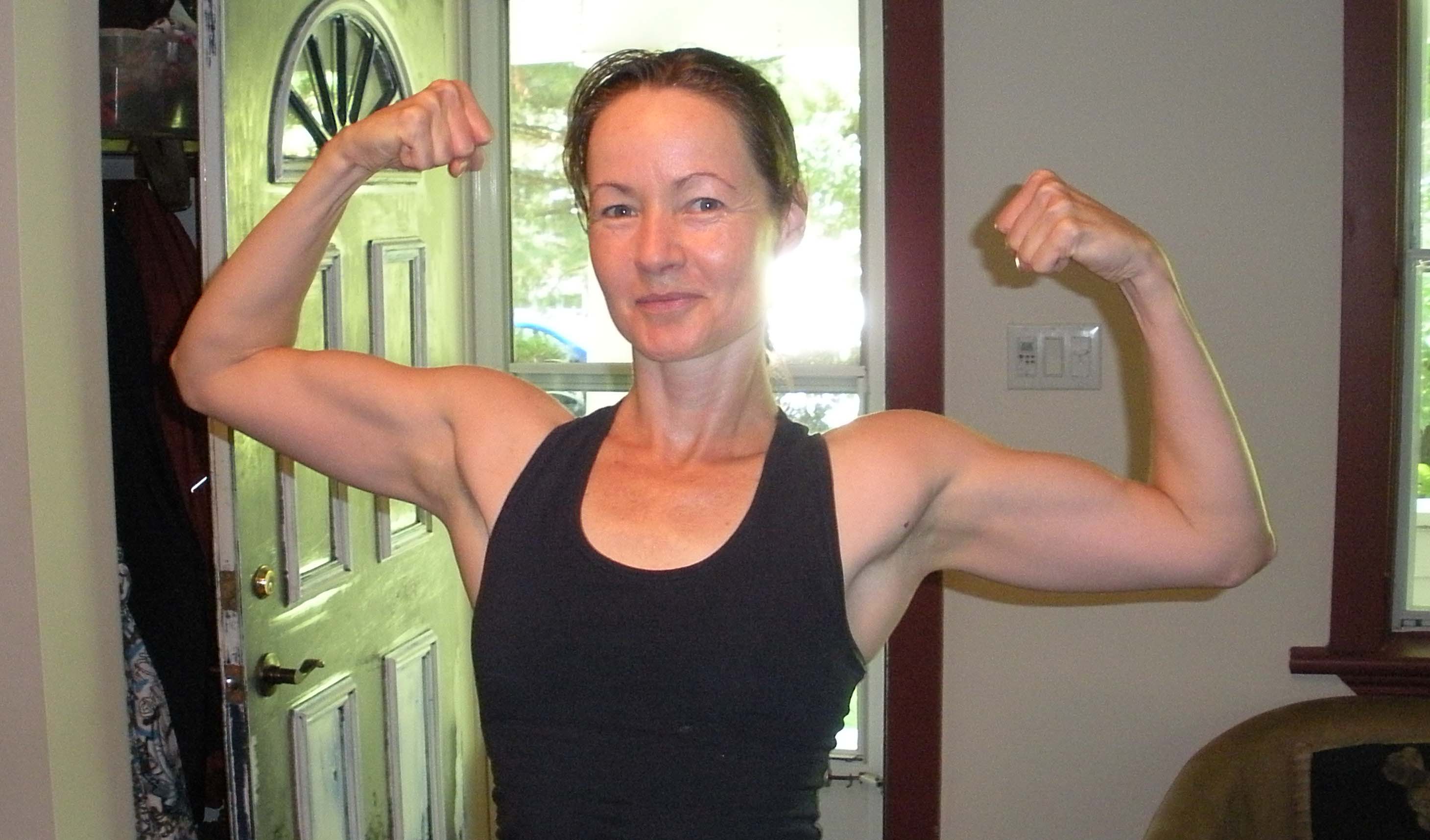 I intended to exercise this morning but my pets conspired against me. I haven’t exercised for twelve days due to a bout of bronichiitis that shows no sign of improvement. I fear that all my weight-lifting gains are fading fast. Compare me twelve days ago (left) to me now (right):