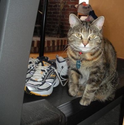 Being under the weather, I decided to resume my exercises slowly. I rolled out the yoga mat, turned around to put in a DVD, and presto, here comes Charlie.