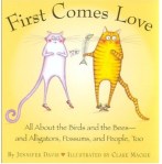 It’s a sad state when you can’t find a photo of one of your favourite cat book covers. Red Cat, White Cat is a rhyming book of opposites that some lucky people have a copy of. (Red Cat, White Cat is also the title of a book subtitled, China and the Contradictions of Market Socialism, but that one’s not for toddlers.) Mandel’s text is sweetly simple, a couple of words per page, brought to life by Clare Mackie’s vivid illustrations. (You get a sense of her whimsical style from her cover of First Comes Love, written by Jennifer Davis.) Gorgeous and fun for the very young.