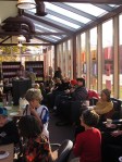 Kids took over the craft table and made friendship bracelets and graffiti art. (Then they took over the refreshment table and ate fruit and baked goods.)