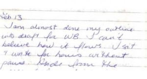 (Yes, writing is like driving in a fog at night, as E.L. Doctorow said, but he’s a careful driver and not exactly on the NaNoWriMo track. For those who want to draft a novel in 30 days, keep in mind that the main reason night-driving works out well in the end is because there’s a road to follow. Off-roading at speed with just the view from your headlights will end in the boggy moors.)