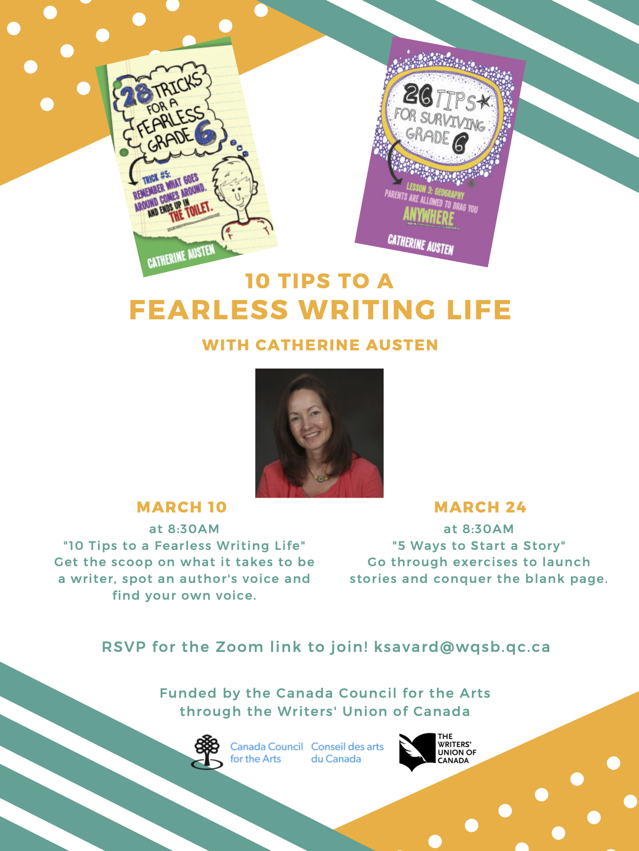 While I’m thanking arts funders… In addition these National Public Readings, I’ve given more than 50 virtual author presentations and writing workshops at Quebec schools so far in 2021, with another 24 coming up in May. These school visits are funded by the Government of Quebec through its “Culture in the Schools” Program, which brings artists from all disciplines into classrooms. Thanks! It has been a real treat to talk with so many students this year while we are all isolated.