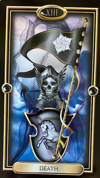 Maybe your Death is a grim reaper like the card at left. Or maybe she’s radically different. Maybe she’s in a different galaxy, or maybe she’s on earth but humans are the least of her worries. (Or maybe they’re the greatest of her worries and she’s going to get rid of us all, for the good of the planet.)