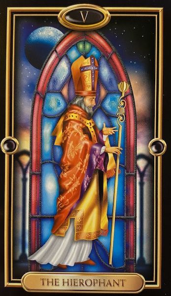 If you’re just learning tarot, use the deck that most appeals to you, and spend some time looking at your card. What does it say to you? (See my description of The High Priest as I see it.)