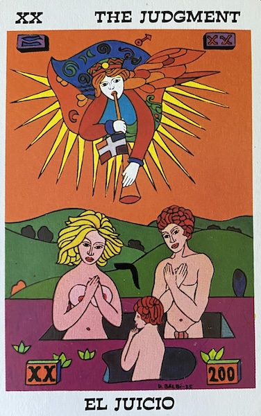 Keep the image and meaning of The Judgement in mind as you develop a story. But go beyond the card — don’t stress about any aspects you “should” include. The card is just a tool to prompt ideas. You can take it anywhere. Toot your own horn.