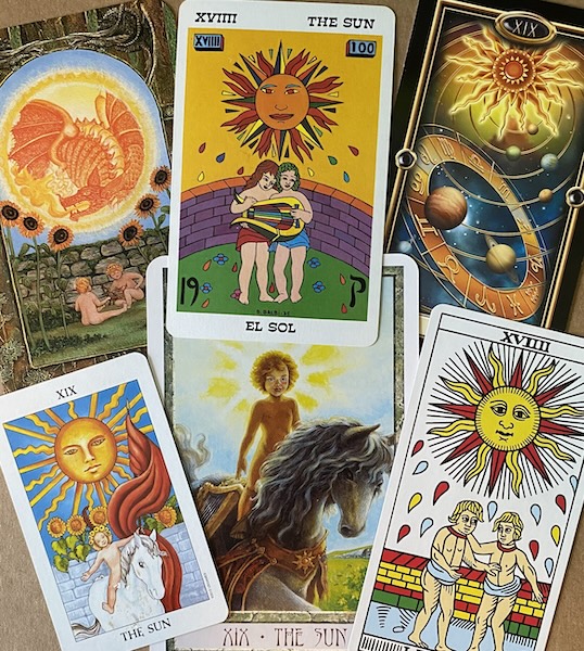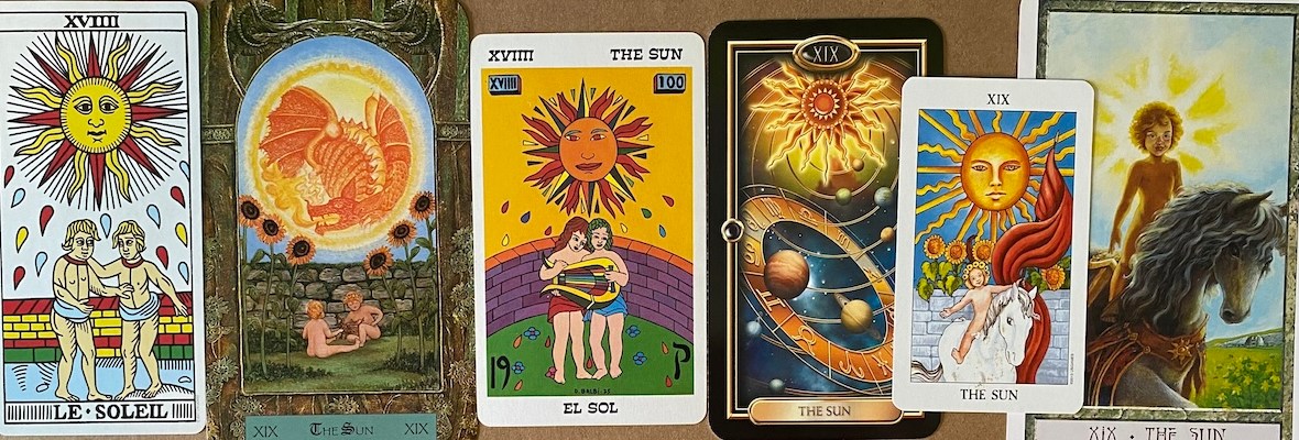 Almost all decks show a sun with a face. A happy personified protective sun.