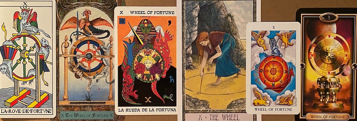 Ponder the meaning of The Wheel of Fortune, but go beyond the card itself to imagine any wheel that sparks a story idea. It might look like the Wheel of Fortune — but it doesn’t have to. Close your eyes and think of wheels turning.